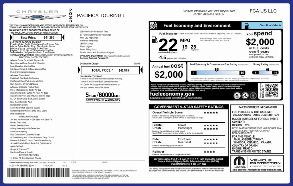 Certified Pre Owned 2023 ChryslerPacifica Touring L Van Passenger Van