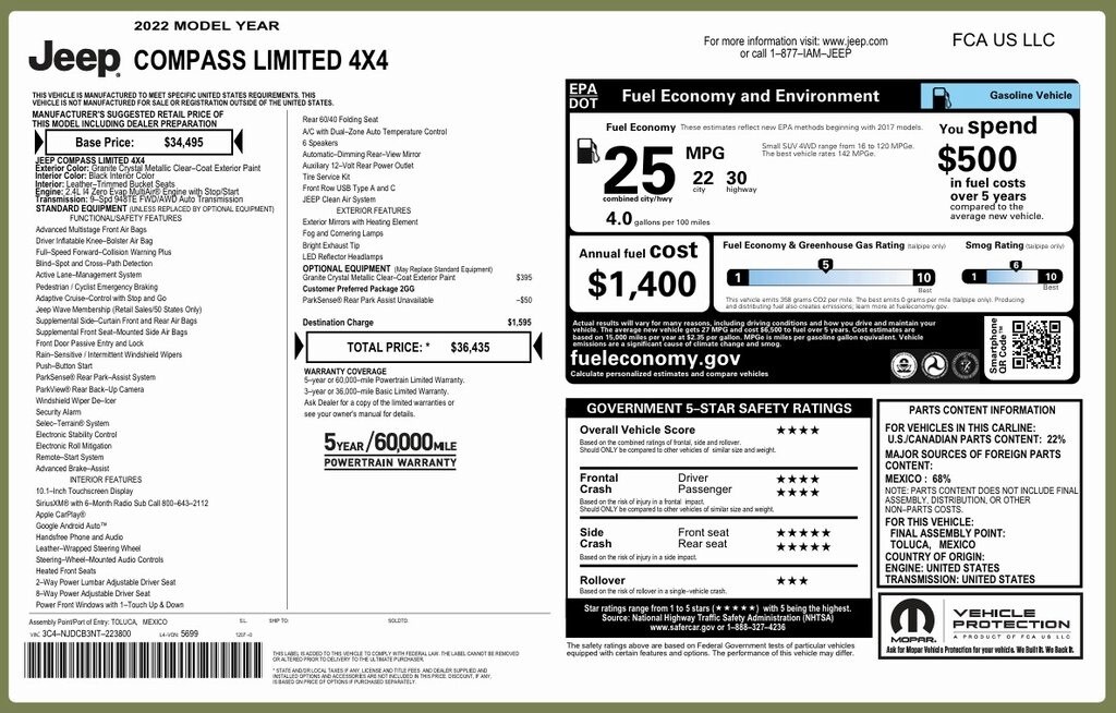 - 22/30 MPG City/Hwy