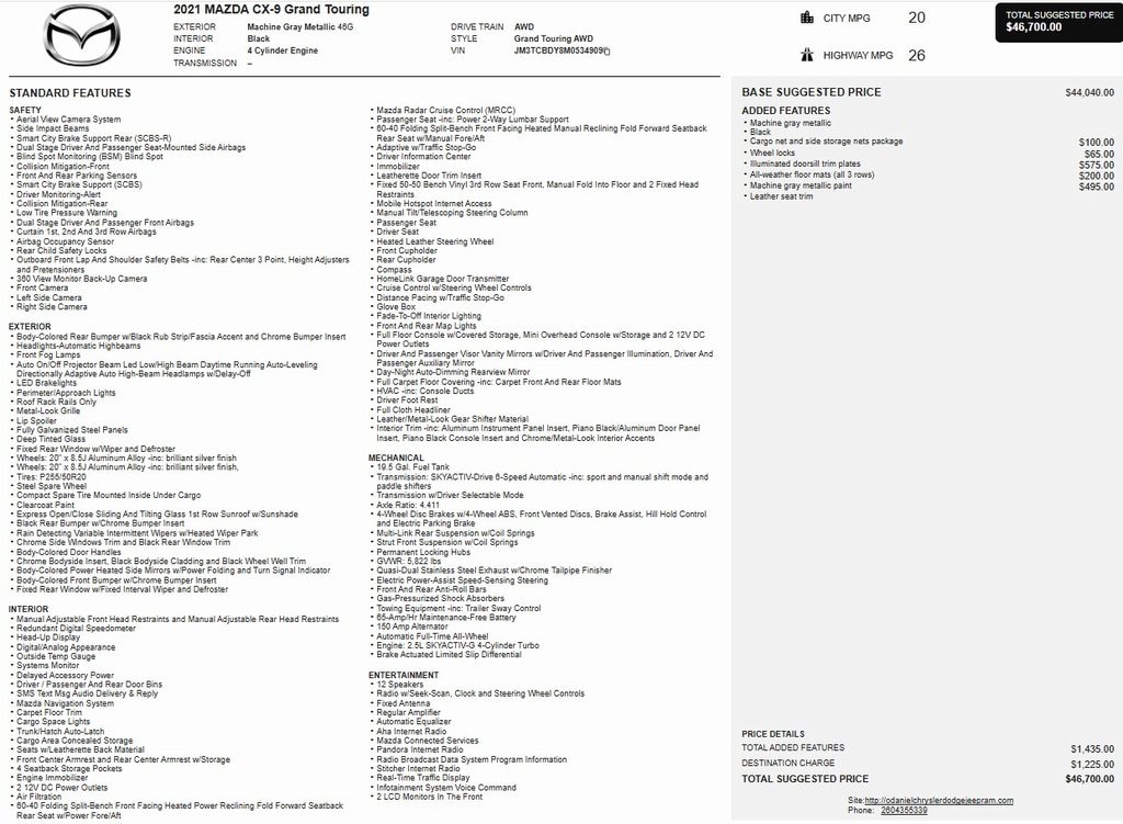 Certified Pre Owned 2021 MazdaCX-9 Grand Touring SUV