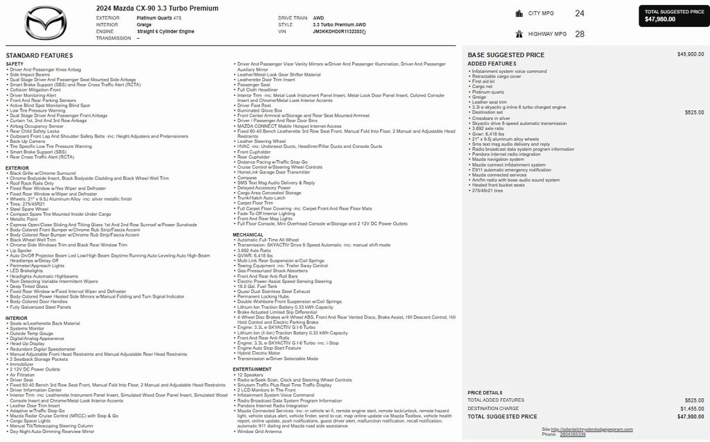 Certified Pre Owned 2024 MazdaCX-90 3.3 Turbo Premium SUV