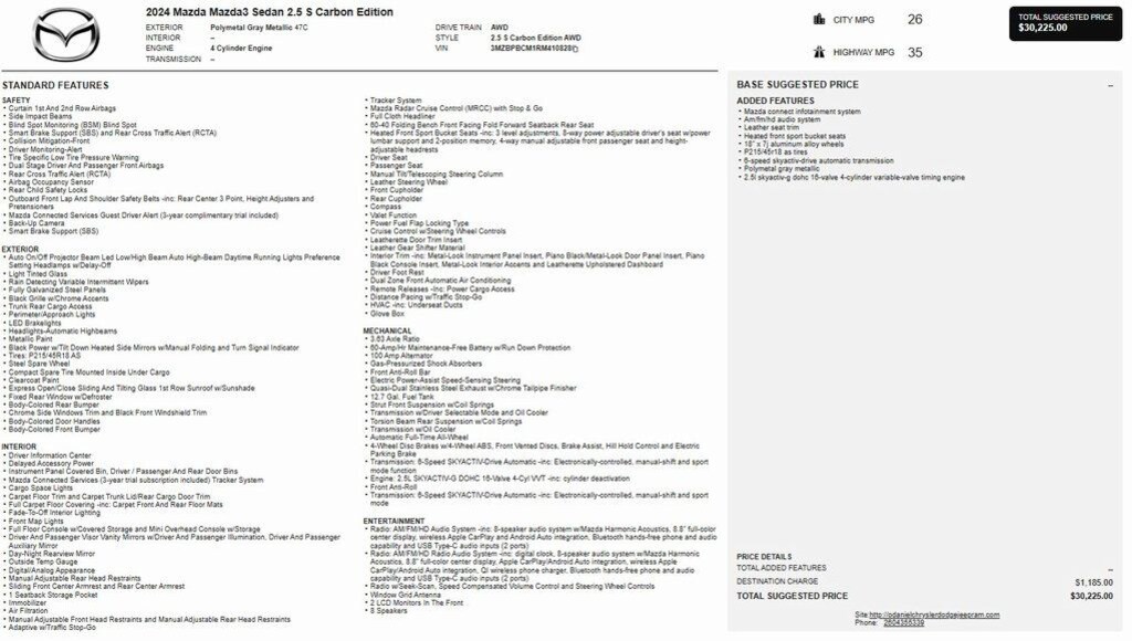 Certified Pre Owned 2024 Mazda32.5 S Carbon Edition Sedan