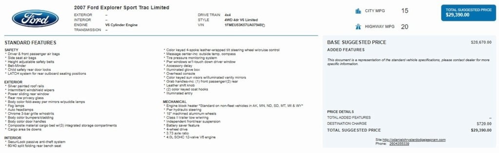 Used 2007 FordExplorer Sport Trac Limited SUV