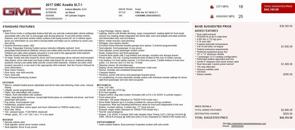 Local Trade in, Acadia SLT-1, 3.6L V6 SIDI DOHC VVT, 18" x 7.5" Aluminum (4) Wheels, Apple CarPlay/Android Auto, Automatic temperature control, Dual SkyScape 2-Panel Power Sunroof, Exterior Parking Camera Rear, Heated front seats, Perforated Leather-Appointed Seat Trim, Power driver seat, Power Liftgate, Preferred Equipment Group 4SA, Premium audio system: IntelliLink.