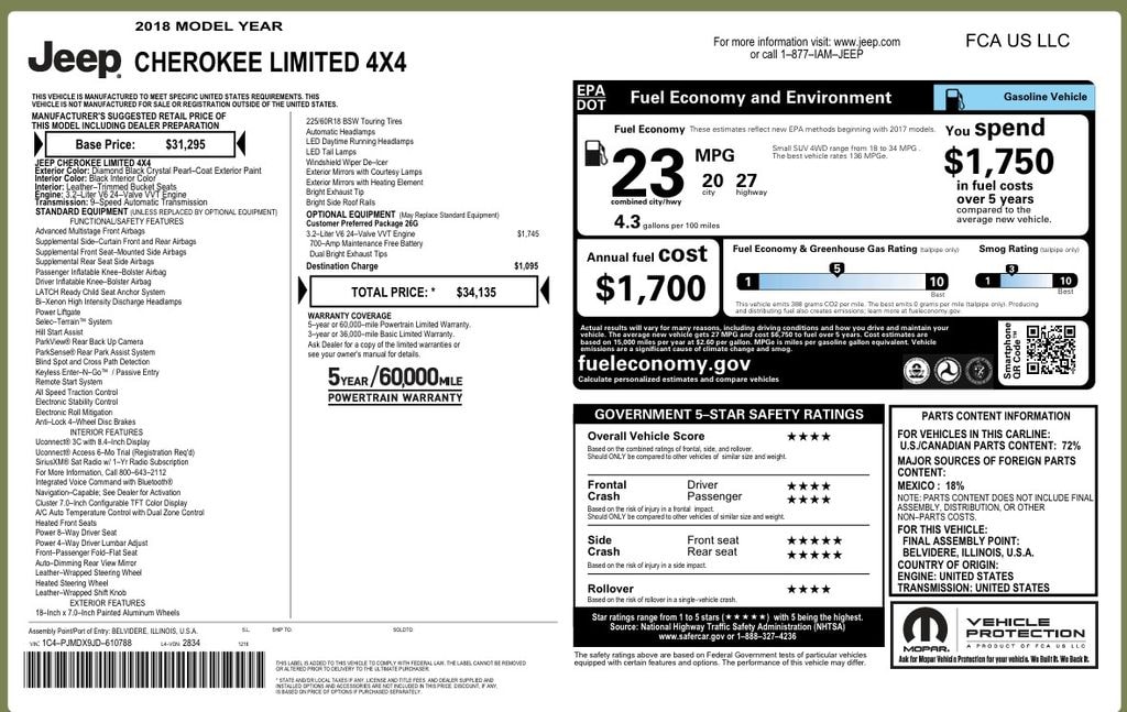 Safety is a top priority, with features like advanced airbags, Electronic Stability Control, and a Rear Back-Up Camera to give you confidence on the road. The Jeep Cherokee Limited's 4-Wheel Disc Brakes and Traction Control ensure a secure and responsive ride.
