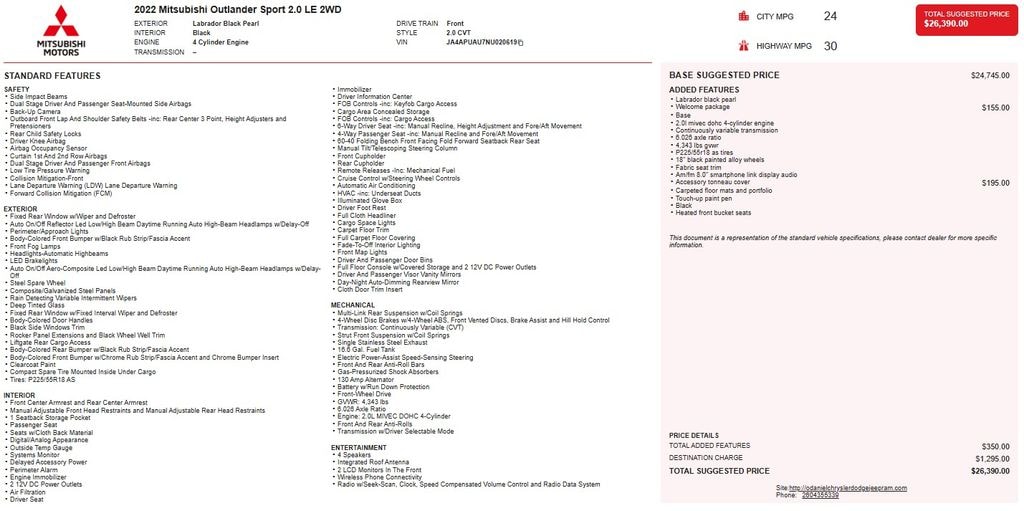 Whether you're navigating the daily commute or embarking on a weekend adventure, the 2022 Mitsubishi Outlander Sport 2.0 LE is the perfect companion. Experience the perfect blend of style, performance, and value â" schedule a test drive today and discover the difference for yourself.