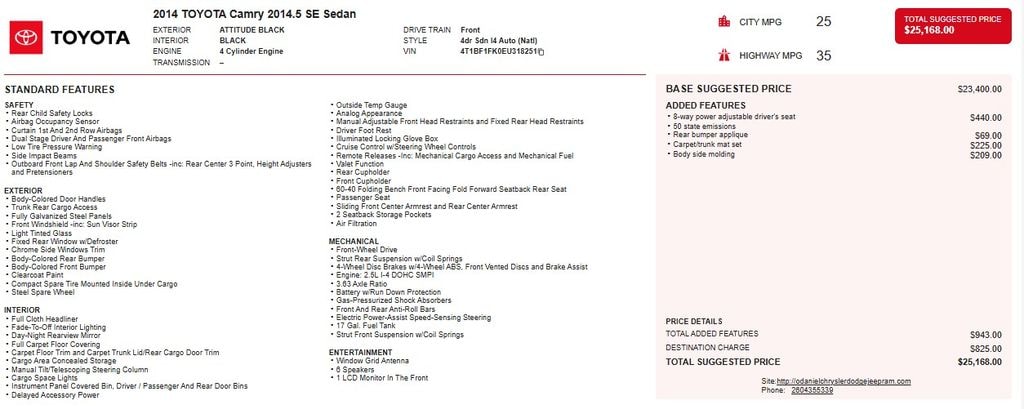Boasting a sleek black exterior and a spacious, well-appointed interior, the Camry SE delivers an exceptional driving experience. The 2.5L I4 SMPI DOHC engine, paired with a smooth-shifting 6-Speed Automatic transmission, provides a responsive and efficient performance, with an impressive 25 city and 35 highway MPG.